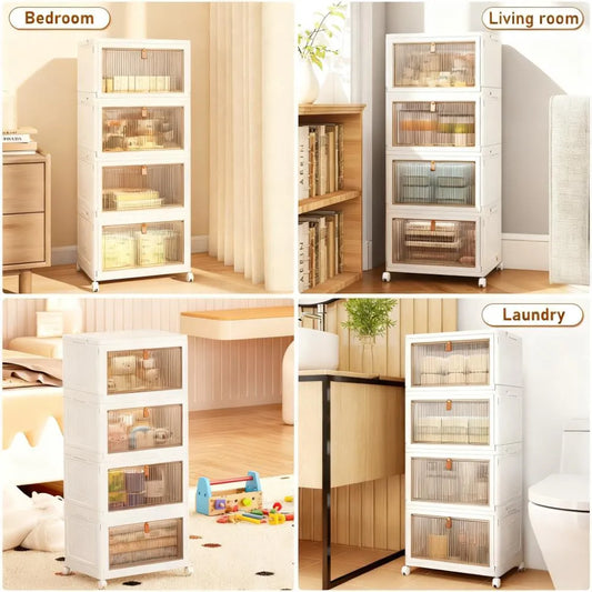 Magnetic Door Storage Bin, 4-Tier Wheeled & Foldable